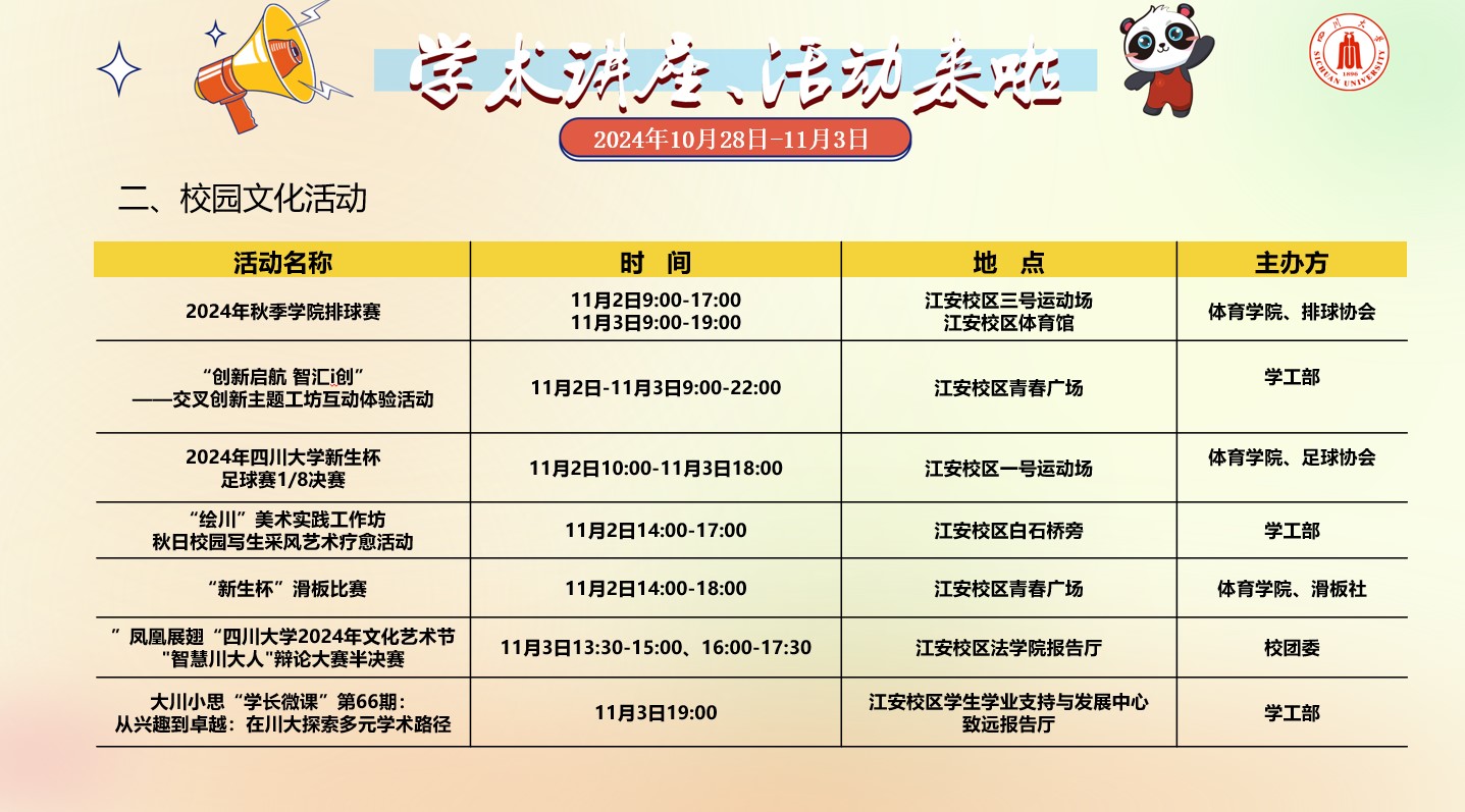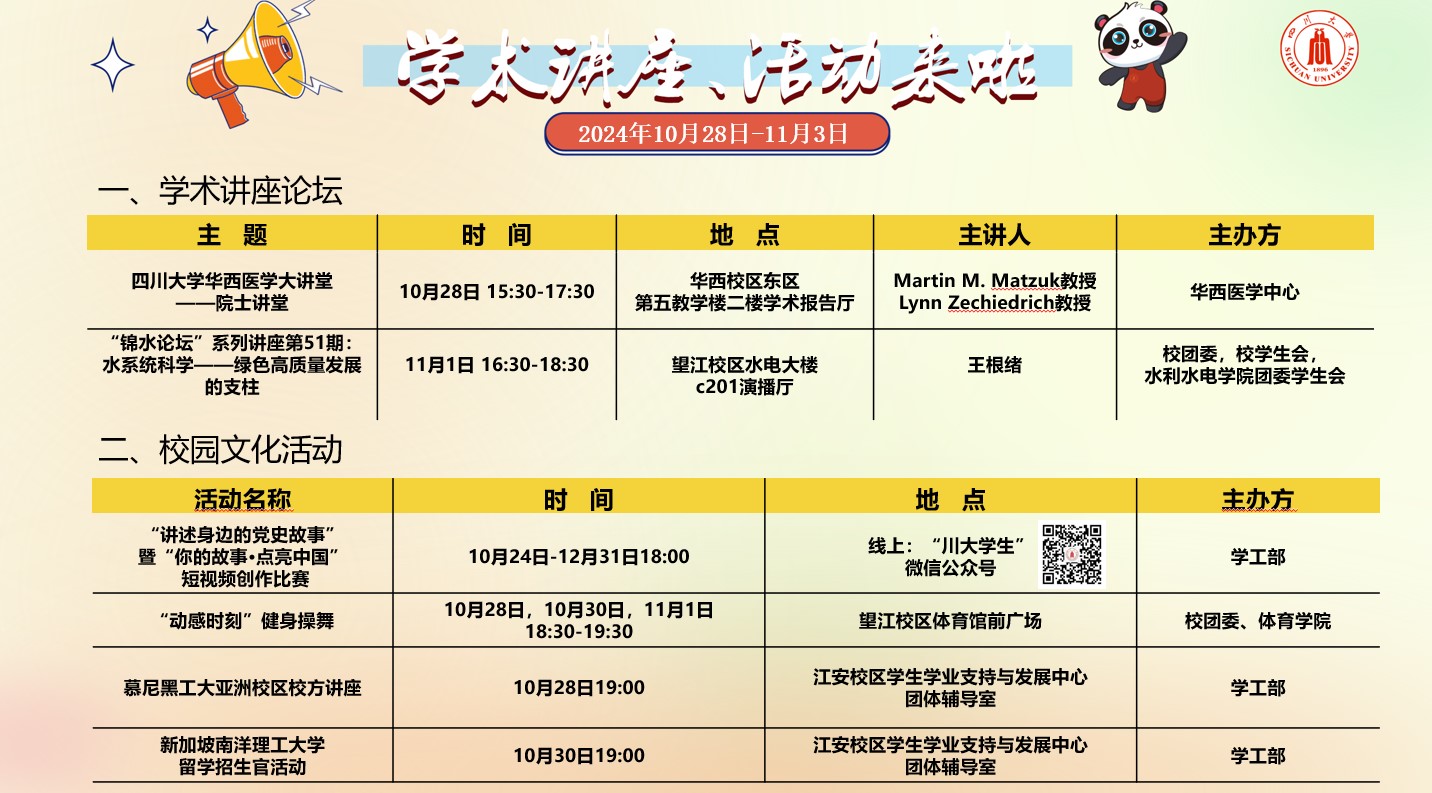 色漫网 2024年10月28日-11月3日学术讲座论坛及校园文化活动预告