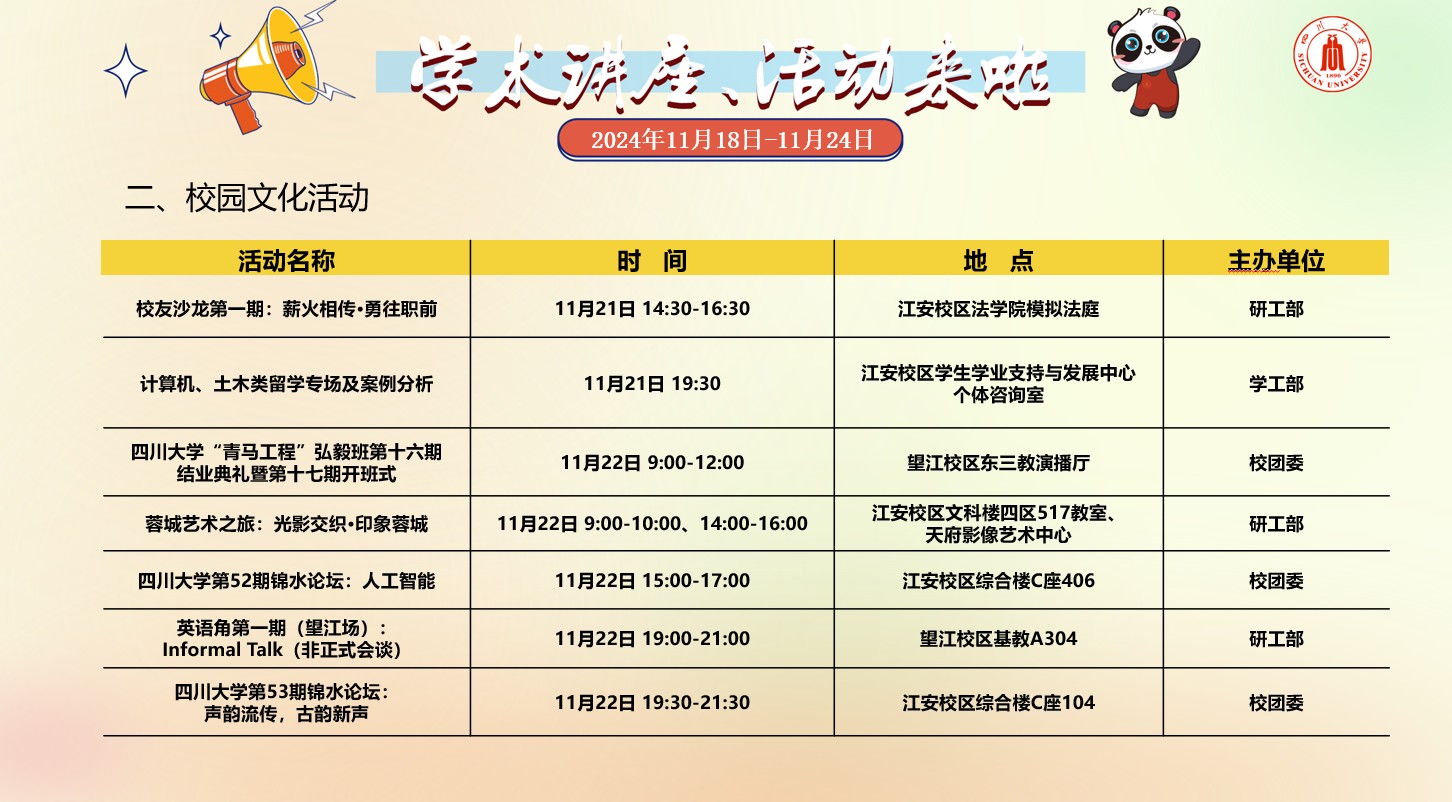 色漫网 2024年11月18日-24日学术讲座及校园文化预告
