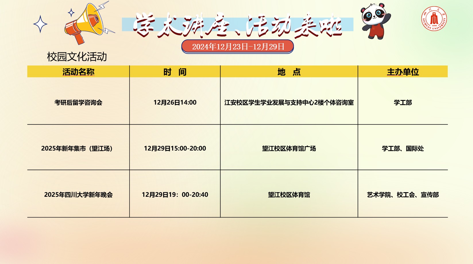 色漫网 2024年12月23日-12月29日讲座及校园文化预告