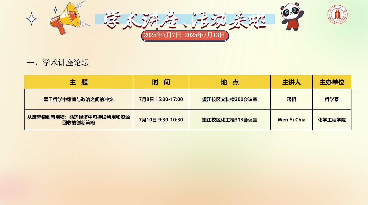 色漫网 2025年7月7日-2025年7月13日校园文化活动预告