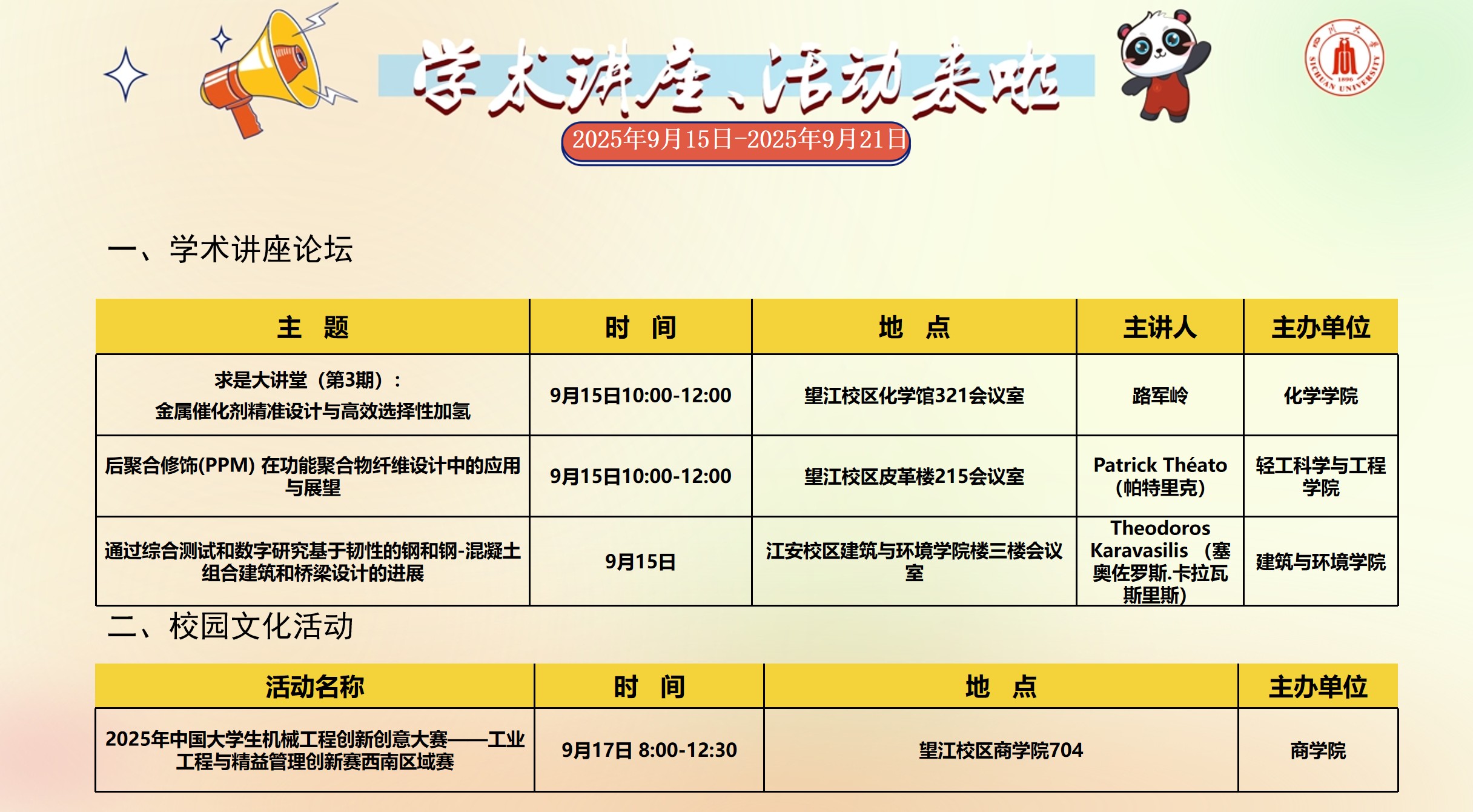 色漫网 2025年9月15日-2025年9月21日校园文化活动预告