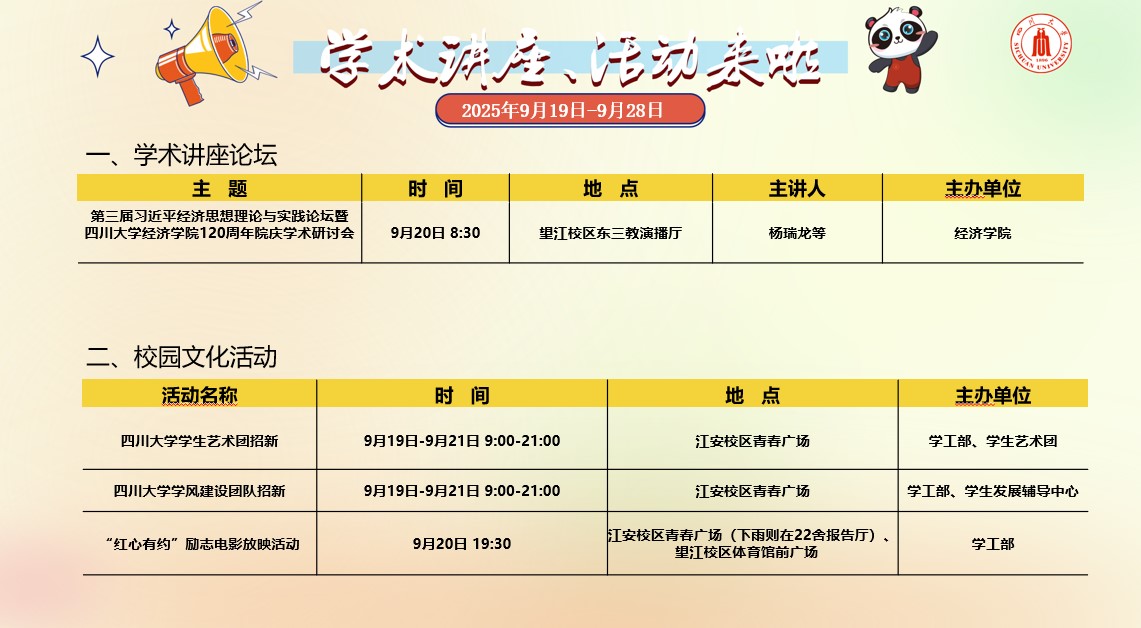 色漫网 2025年9月19日-2025年9月28日校园文化活动预告