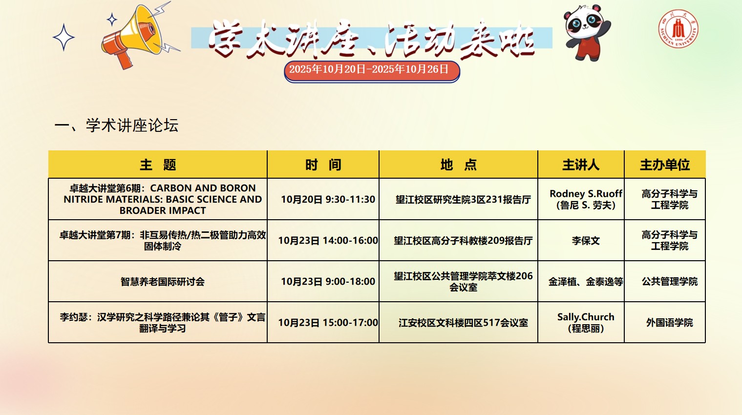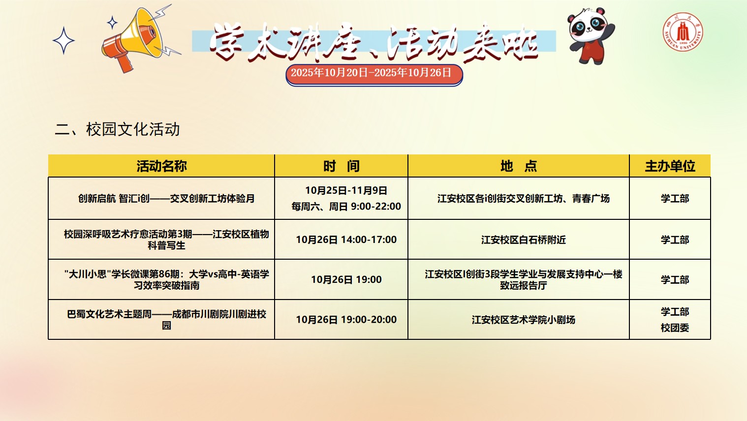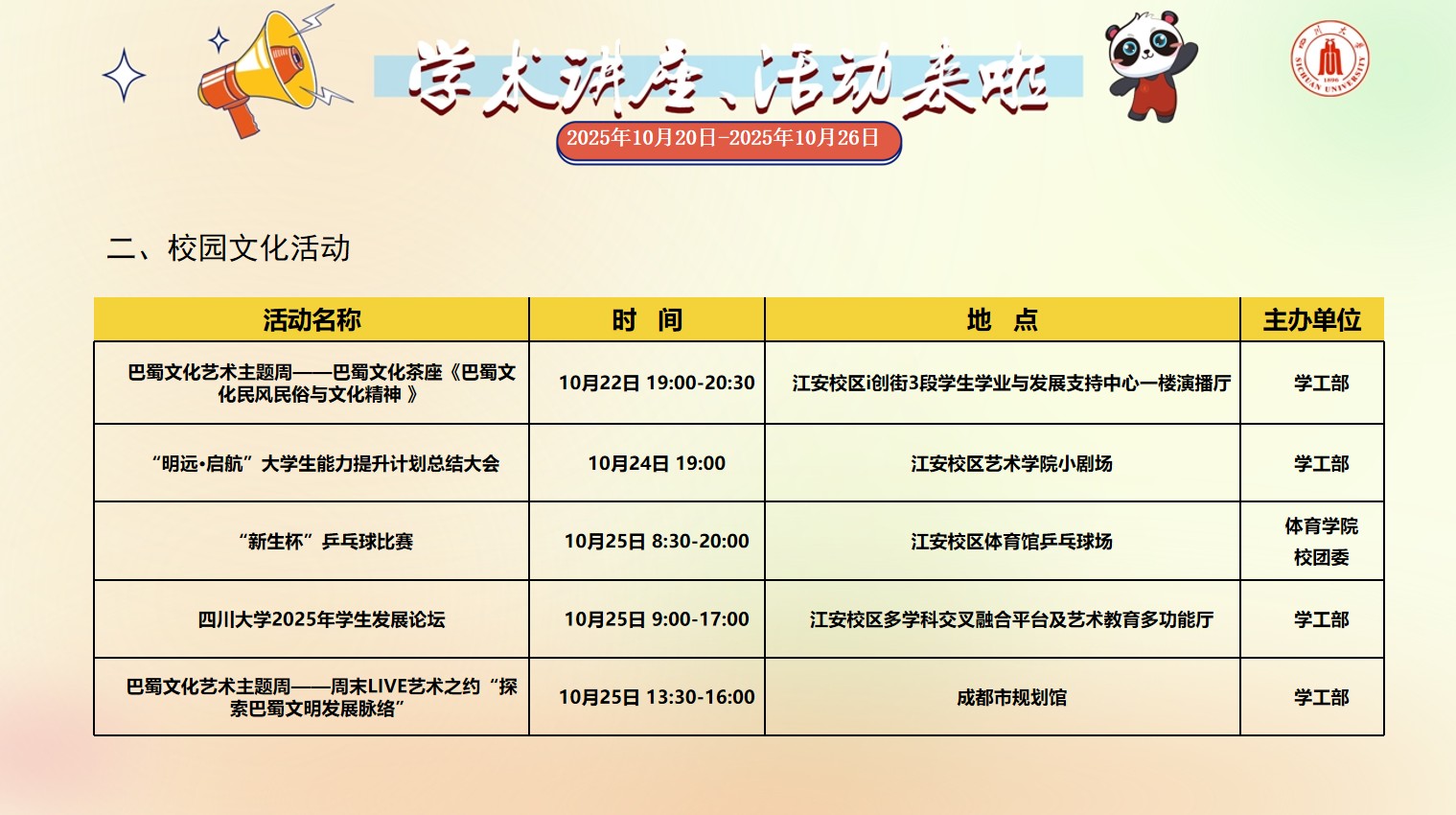 色漫网 2025年10月20日-2025年10月26日校园文化活动预告