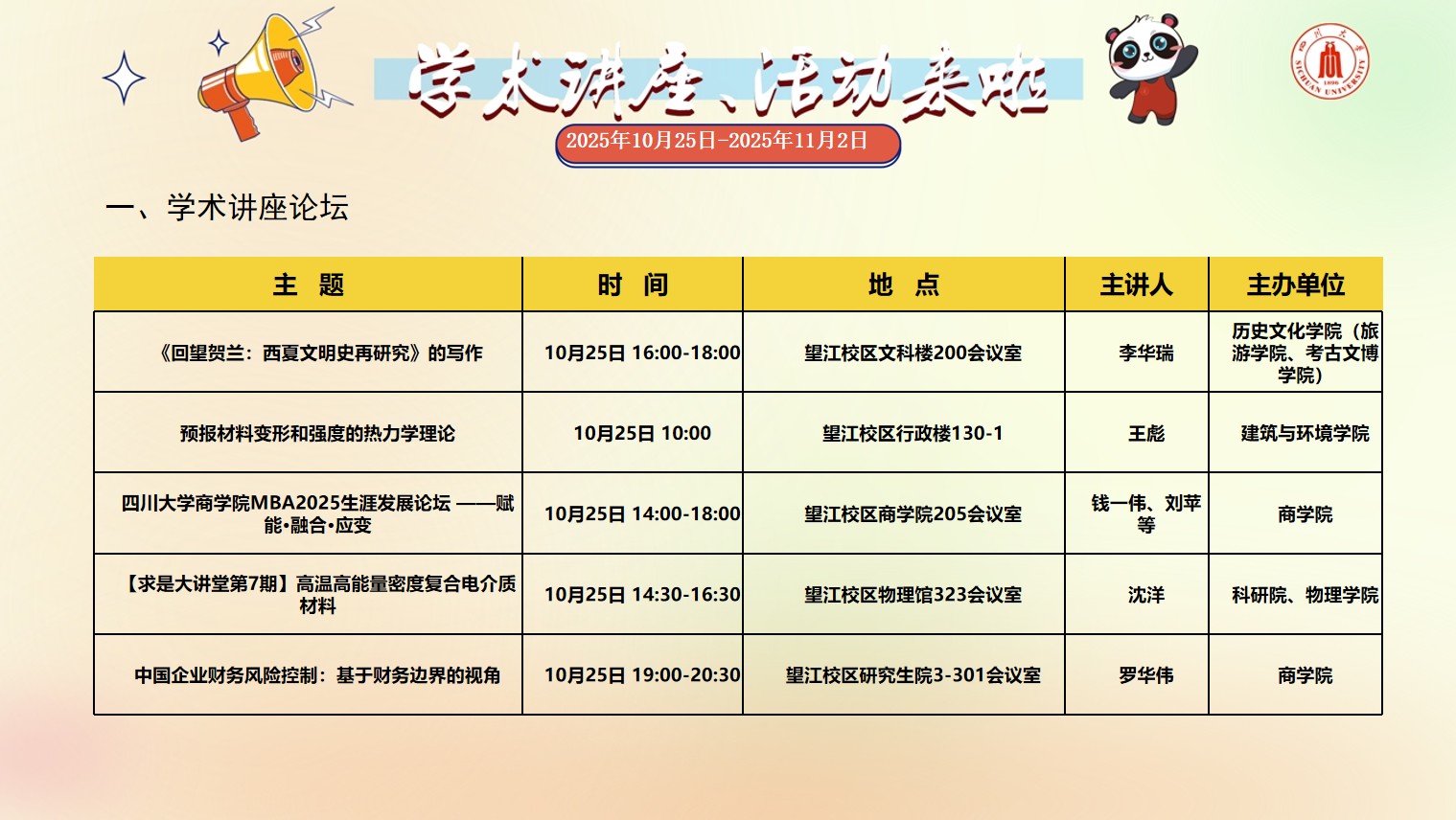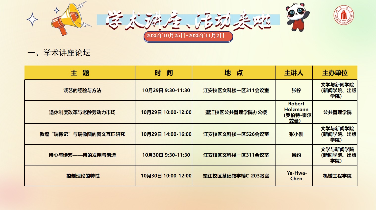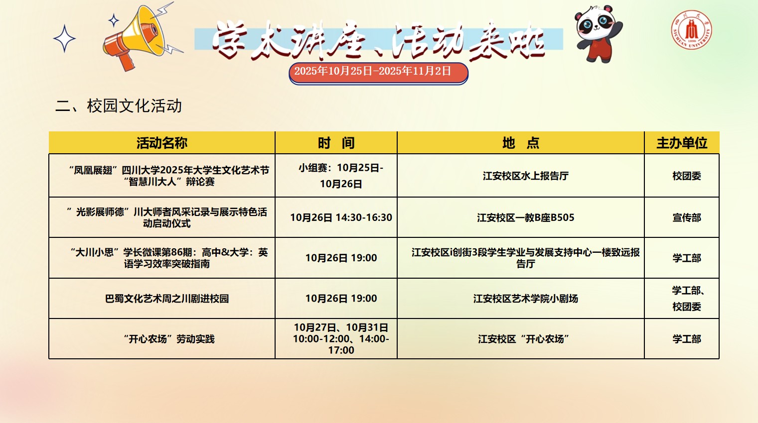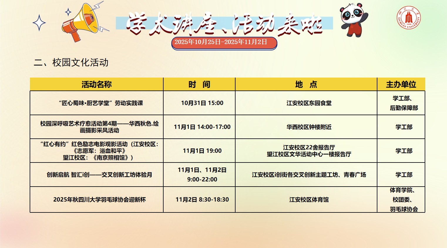 色漫网 2025年10月25日-2025年11月2日校园文化活动预告