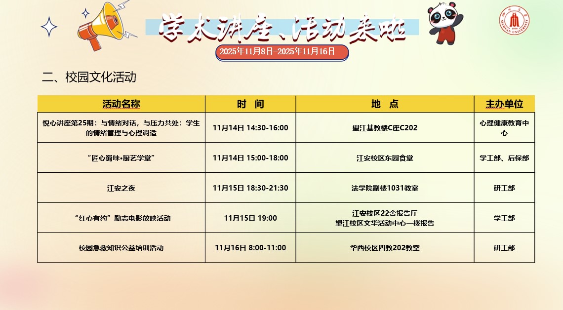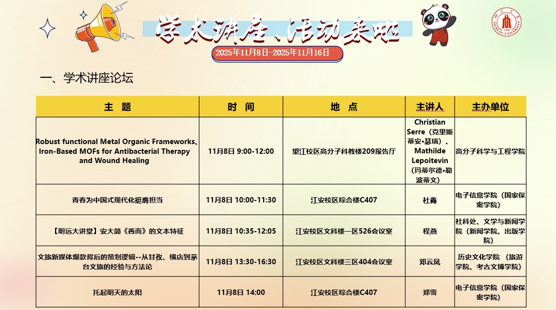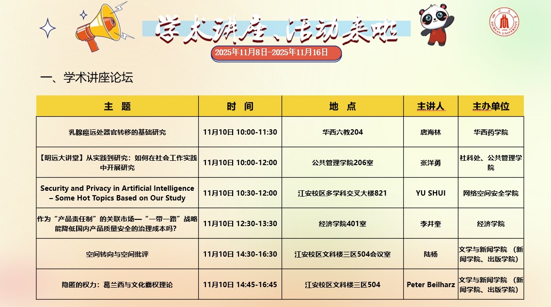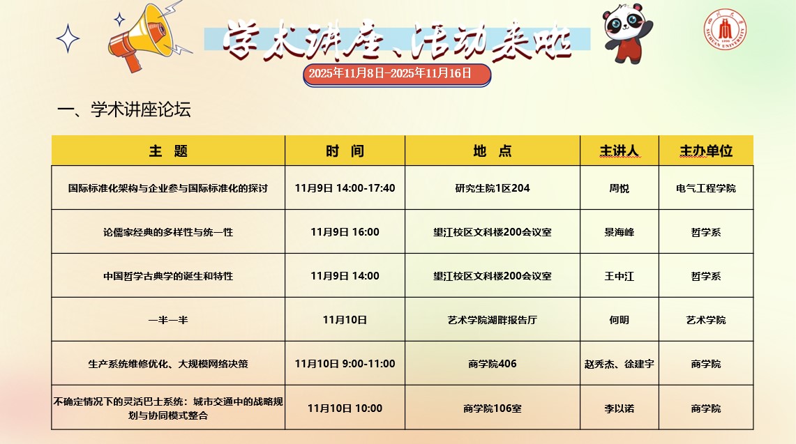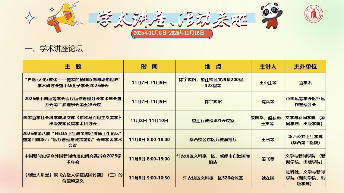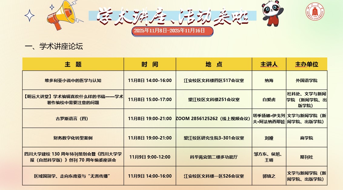 色漫网 2025年11月8日-11月16日学术讲座和校园文化活动预告