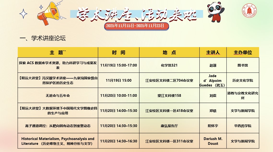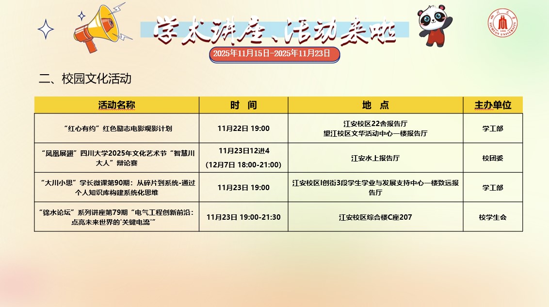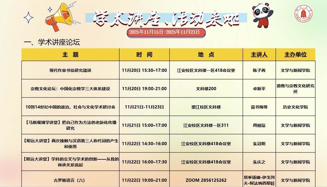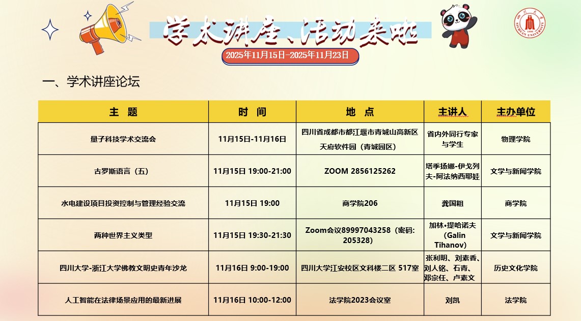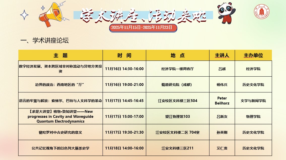 色漫网 2025年11月15日-2025年11月23日学术讲座和校园文化活动预告