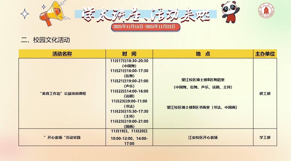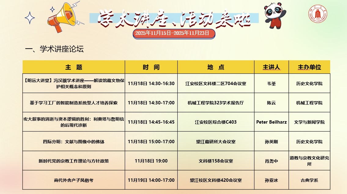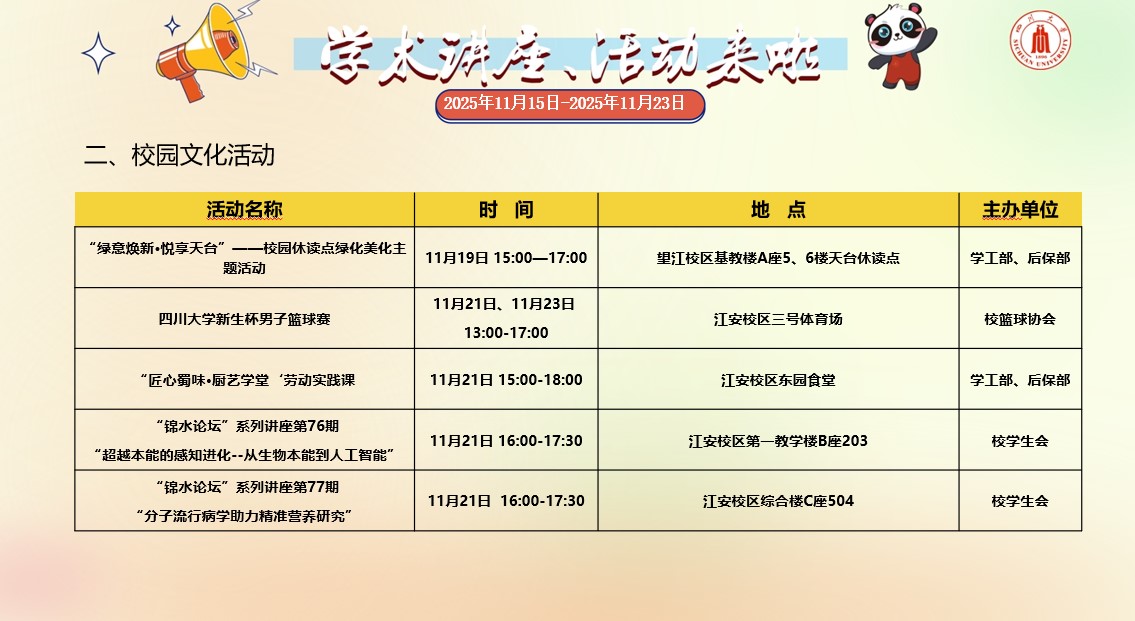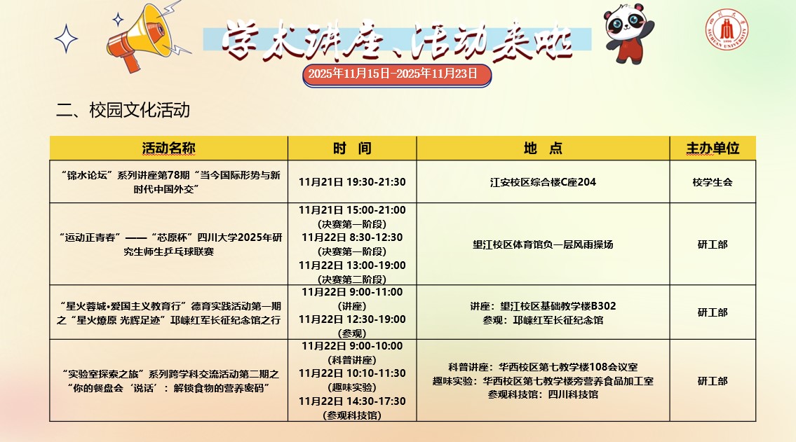 色漫网 2025年11月15日-2025年11月23日学术讲座和校园文化活动预告