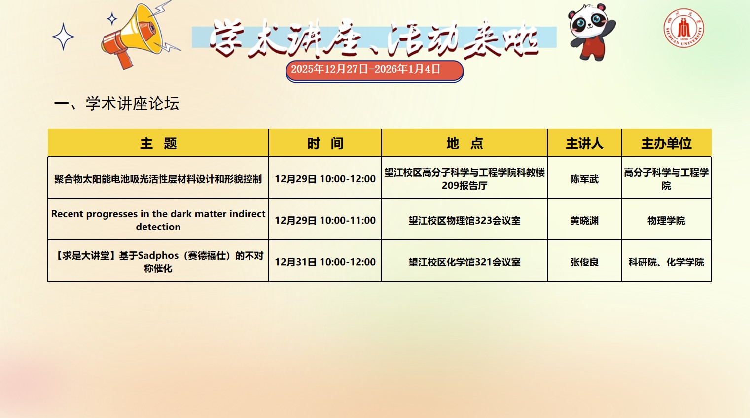 色漫网 2025年12月27日-2016年1月4日学术讲座和校园文化活动预告