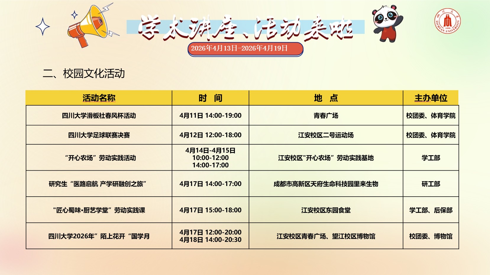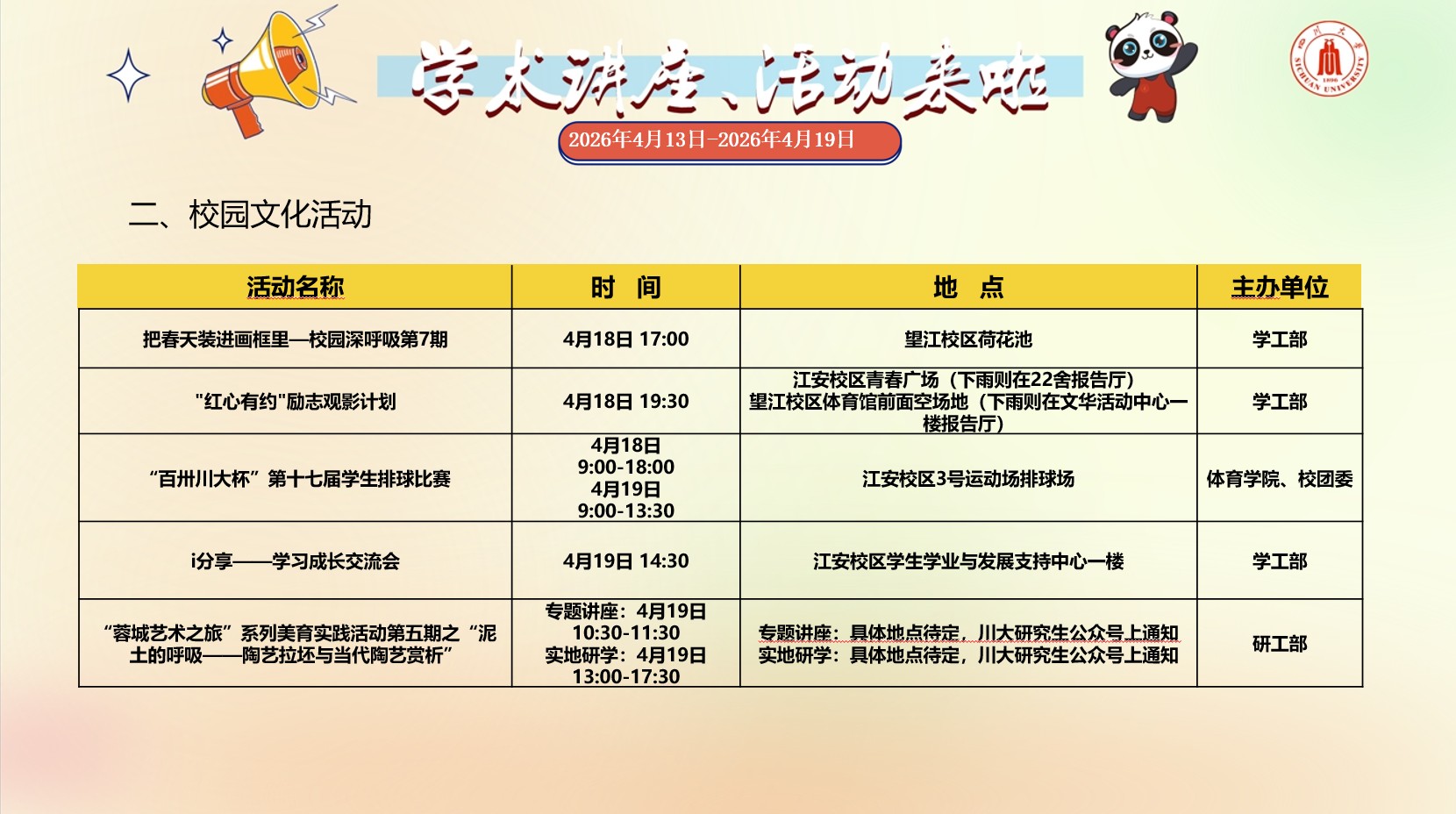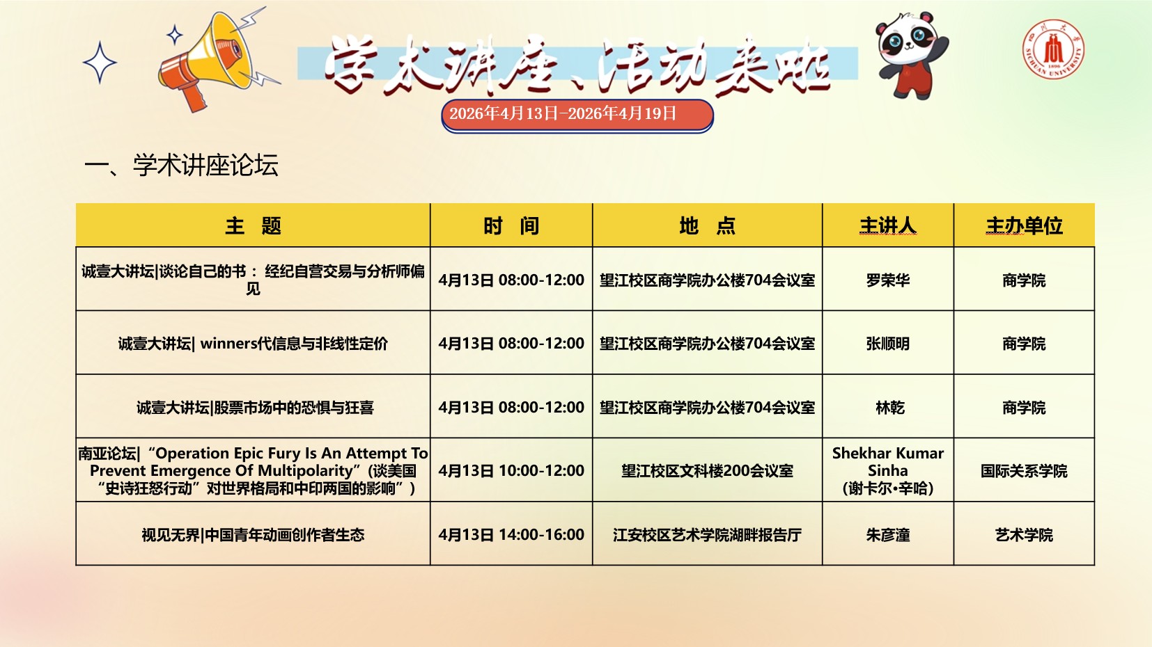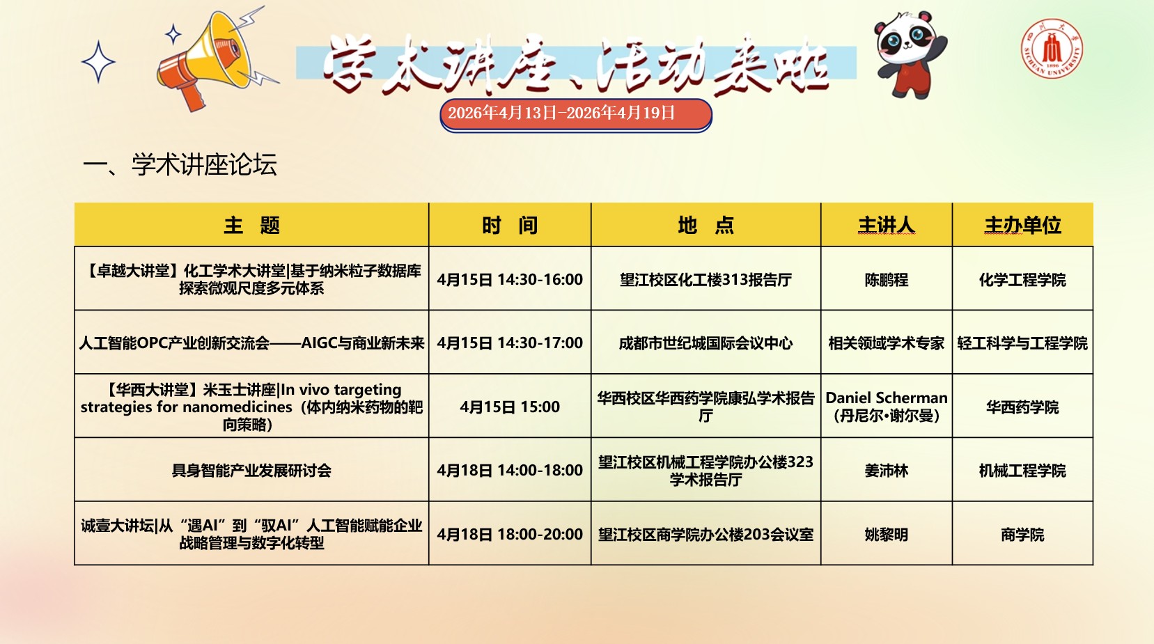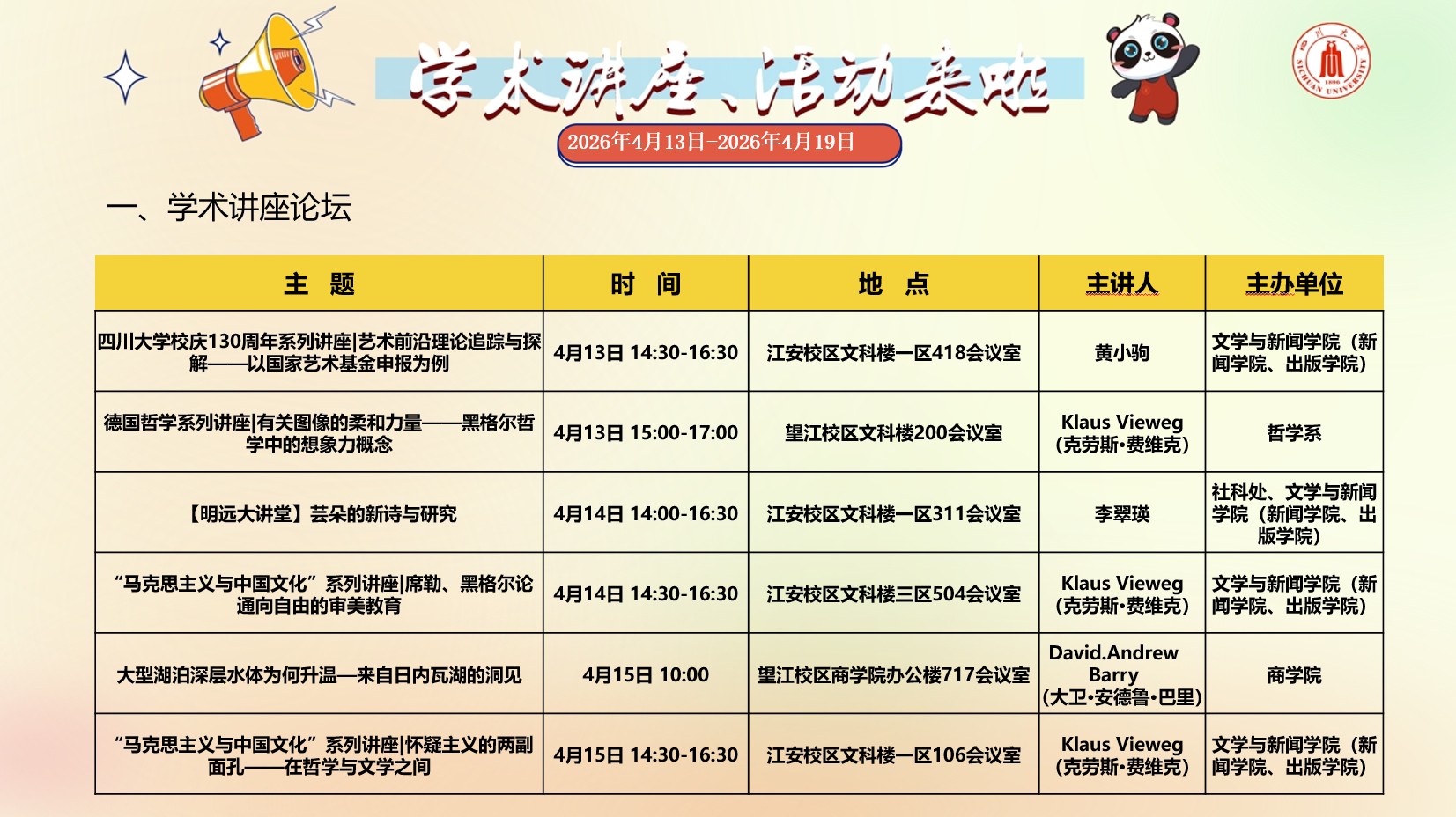 色漫网 2026年4月13日-2026年4月19日学术讲座预告