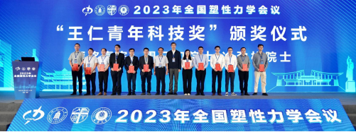 开幕式最后,举行了“王仁青年科技奖”颁奖仪式。“王仁青年科技奖”的设立是为纪念我国著名力学家、北京大学王仁先生对我国塑性力学的杰出贡献,奖励36岁及以下塑性力学领域的优秀青年科技人才。会议共同主席、成都大学校长王清远教授揭晓了本届“王仁青年科技奖”获奖名单,清华大学崔一南、浙江大学肖锐、华中科技大学朱亚新等12人获得“王仁青年科技奖”。兰州大学周又和院士、哈尔滨工业大学冷劲松院士为12名获奖人颁奖并合影留念。