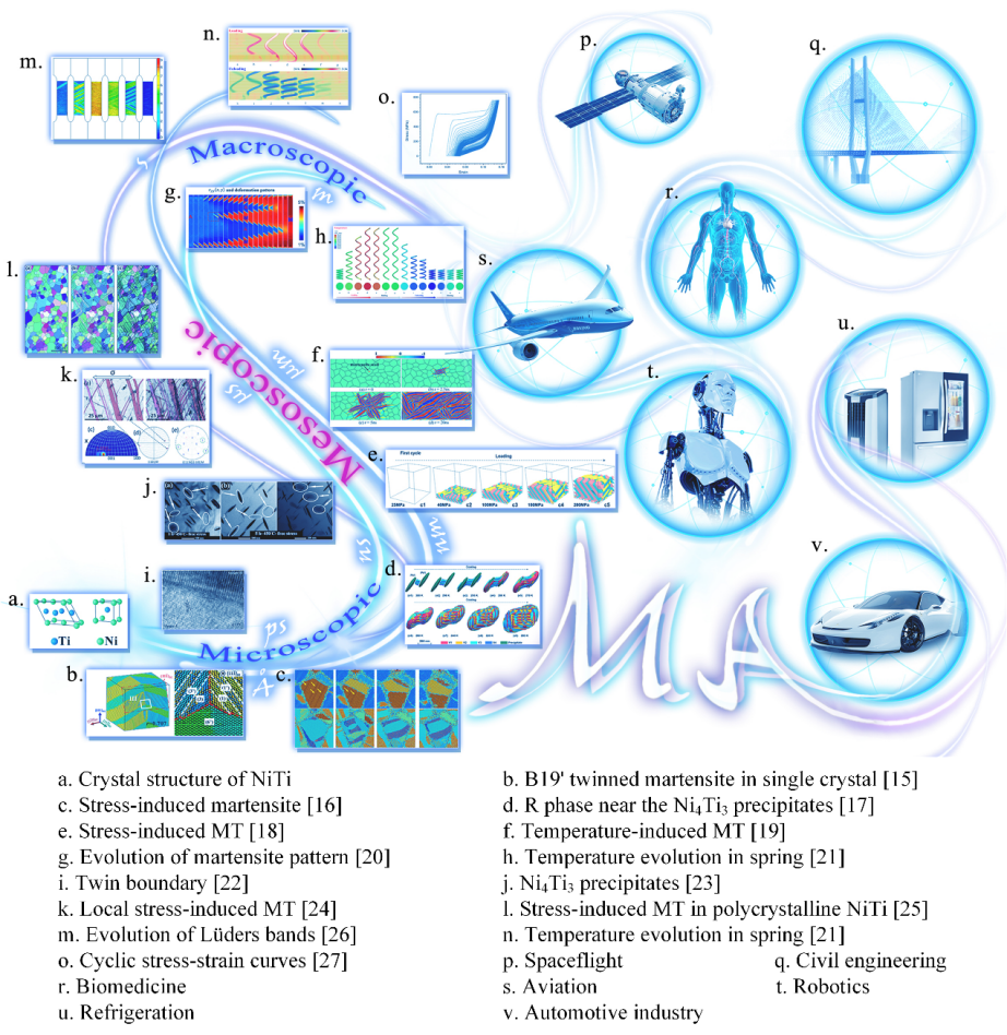 形状记忆合金(SMA)是一类先进的功能材料,其具有超弹性、形状记忆效应、弹卡效应等独特的功能性能,已广泛应用于航空航天、汽车工业、微机电系统、土木工程、机器人系统、生物医学等领域,且未来有望作为核心固态制冷剂应用于固态制冷领域。对形状记忆合金复杂力学行为和多尺度变形机理的研究是固体力学和材料科学领域的重要前沿和极具挑战性的课题。相场法是除实验观察外的主流和重要数值研究工具,在预测形状记忆合金的功能特性和断裂行为以及揭示物理机制方面发挥着越来越突出的作用。
