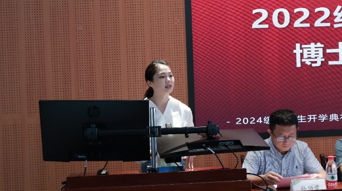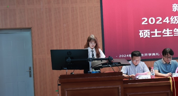 新生代表、2024级土木工程专业硕士生邹锐雯同学在发言中表达了对学院老师的诚挚感谢和对未来学术生涯的美好憧憬,倡议同学们保持探索精神,高效利用时间,不怕挫折,乘风破浪,勇往直前。