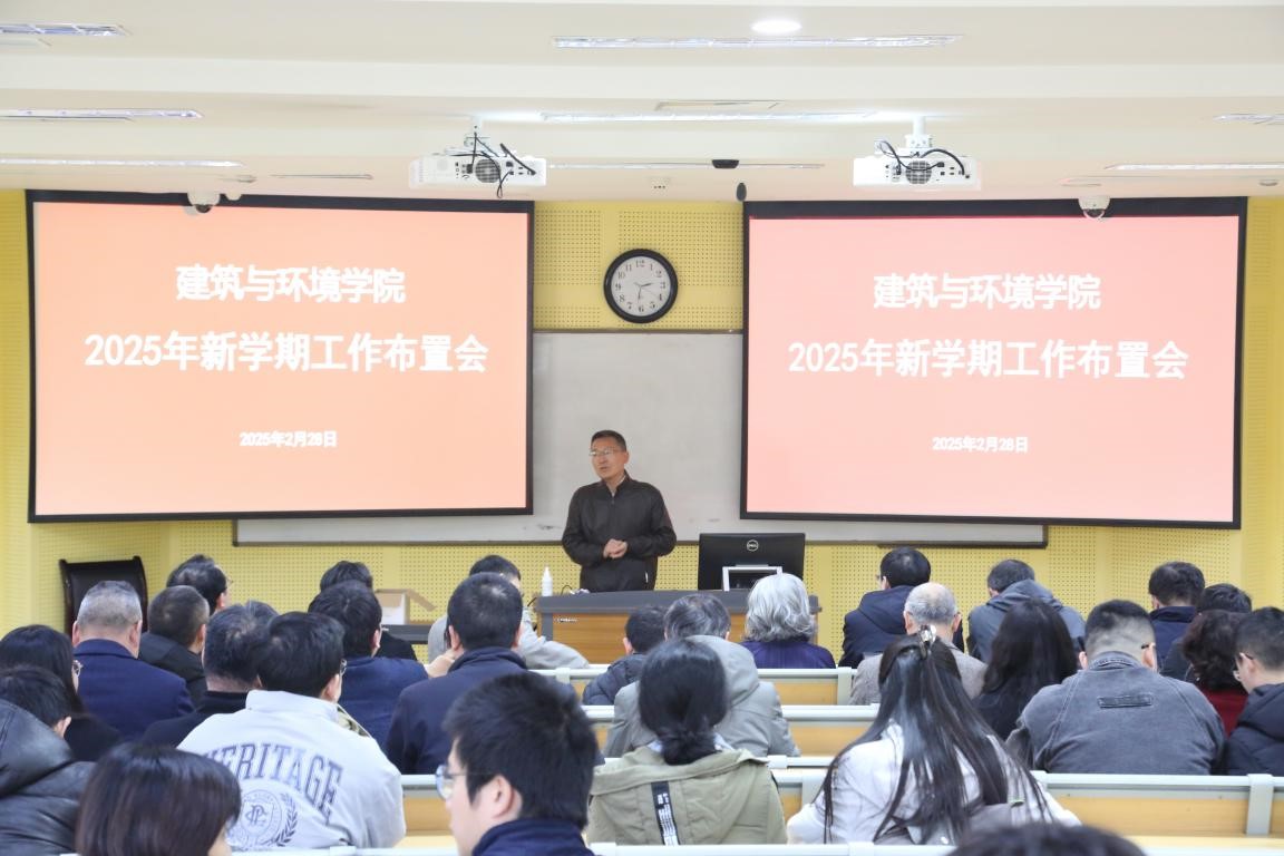 院长戴峰首先传达了学校2025年新学期工作布置会精神。戴峰指出,学院新的一年工作将紧紧围绕打好“十四五”收官战、做好“十五五”布局、用好改革开放关键战略这“三好”展开。针对学院重点工作,戴峰做了安排部署,强调必须坚持立德树人根本任务,全面推进研究生工作,持续强化师资队伍建设,切实提升科研核心竞争力,大力拓展国际合作与交流,促进校友与院地合作,努力打造一流服务保障体系,营造创事干业良好氛围。科学化实施考核调整,不断实现资源优化配置,推进学院各项事业实现一流建设发展,为贯彻落实全国教育大会精神、建设教育强国书写建环篇章、贡献建环力量。