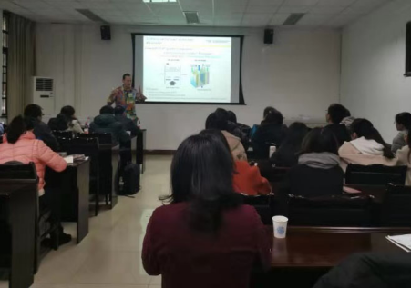 当日在望江校区建环学院128多媒体教室,Crittenden院士为广大师生做了主题为“Degradation of methylisothiazolinone using an electrochemical flow through anode”的精彩学术报告。建环学院土木工程系副教授谢汝桢主持了报告。建环学院陈滢、黄荣夫、熊兆锟、刘杨,化工学院谢锐、汪伟、刘长军等老师及研究生参加了报告会。