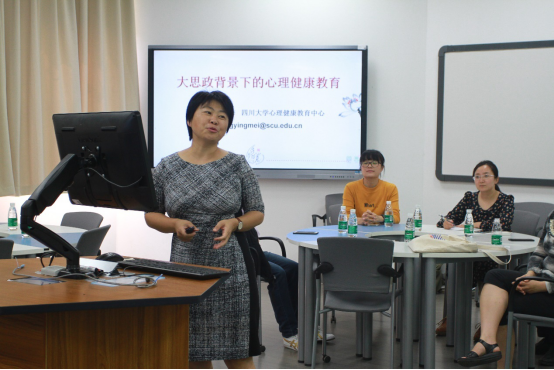 心理健康教育中心副主任王英梅教授作了《大思政背景下的心理健康教育》主题培训。她强调“大思政”教育模式中心理健康教育的重要性,要注重以“全员、全方位、全过程”为实践导向,推动大学生全面可持续性发展。她结合心理学专业知识、调查数据、典型案例等生动而形象的对大学生心理健康工作领域、心理健康状态、心理健康标准、精神状况等进行了深入分析,对如何发现大学生情绪与行为障碍以及作为班主任如何应对和专业化处理作了详细阐释。