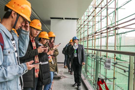 同学们于21日首先参观了重庆市奥林匹克体育中心。在后续3天的实习中,同学们还听取了工程安全管理报告,了解了中梁山外立面幕墙设计及施工要点、钢结构安装;半山站移动平台构造及施工工艺、地铁施工中设备基础做法;石桥铺及石新路支护结构施工、电梯、布线及附属设备安装等施工要点,使同学们认知了地铁土建工程相关工程知识;观摩了地铁车站的重件建材高效转运设备、自动化钢筋加工制作工法以及地下施工组织管理等。