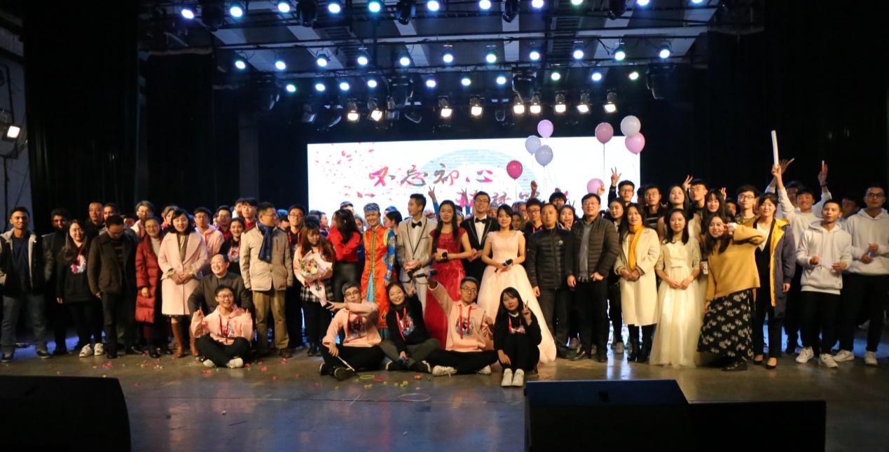 在青春热烈的音乐声中,学院领导、老师与全体演职人员合影留念,学院2017年本科生“不忘初心,环梦筑景”迎新晚会圆满落下帷幕。