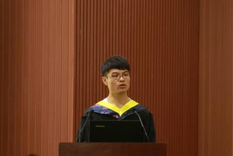 毕业典礼在庄严的国歌声中正式开始。院长熊峰教授首先祝贺学院2017届毕业生顺利毕业,希望毕业生同学在今后的人生旅程中要培养多学科思维意思,独立思考,注重创新,保持良好心态,秉持终身学习的态度。灾后重建学院院长柯瑞卿教授告诉同学们要选好自己的路,让自己的人生变得多彩。环境科学专业本科毕业生陈雪同学、土木工程专业本科毕业生钟爽同学和环境工程专业博士毕业生廖兵同学代表毕业生分别发言。他们在发言中感谢母校的教诲,怀念读书的美好时光,在今后的学习工作中一定会牢记老师们的嘱托,为学院争光,为母校添彩。学院党委书记蒋文涛教授在致辞中希望各位同学们一定要有强烈的社会责任感。