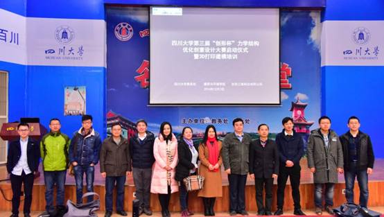 、创形三维科技有限公司联合举办的第三届“创形杯”力学结构优化创意设计大赛开幕仪式在江安校区水上报告厅顺利进行。学院副院长蒋文涛教授、李晋川教授、李亚兰老师、黄学进老师、王宠老师、王柏弋老师、西南科技大学景峥老师、西华大学邱清水老师、成都大学蔡萌琦老师、成都工业学院张小山老师以及创形三维科技有限公司姚云峰代表出席了开幕式。