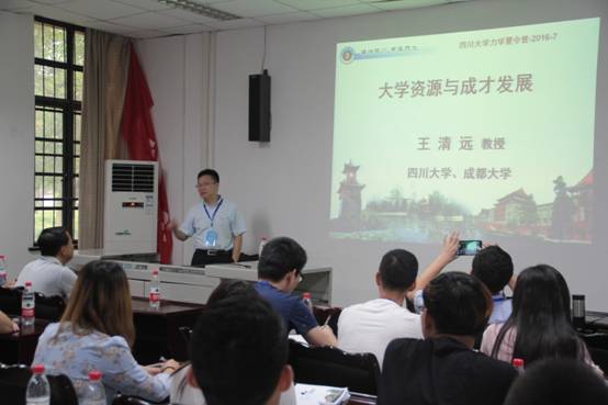 随后,国家杰出青年基金获得者、破坏力学与工程防灾减灾四川省重点实验室主任王清远教授,以“大学资源与成才发展”为主题,为营员们带来了首场专题报告。王清远教授从大学教育资源的分配、大学生对资源的利用与获取出发,结合其学科研究领域的成果与体会,为营员们带来了一场振聋发聩的讲座。在场的研究生志愿者听后反馈,要是在本科的时候能聆听王清远教授的这场讲座,他们在求学过程中将会主动获取更多的资源,为自己的人生找到更适宜的捷径。