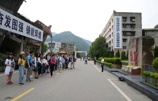 告别开禧寺就驱车前往北川老县城地震遗址。置身老县城,当年同胞们所遭受的一切依然那么真切,整个废墟饱含着无尽的痛苦和无奈。此处人类的脆弱与坚强并存,全国上下齐心,爱与勇气彰显出人类的伟大。在公墓前,师生们深切缅怀了“5·12”特大地震遇难同胞,表达了对遇难同胞的无尽哀思。随后在“5·12汶川特大地震纪念馆”中更加全面深刻地了解了汶川特大地震的相关内容,学习了地震及建筑抗震的相关知识,同时学习了这一基于社会重大史实所进行的现代建筑设计,感受建筑师如何从建筑的视角做出解读,以及如何进行表达。抵达下一站北川新县城,探访团依次参观了北川羌族民俗博物馆、北川图书馆、抗震纪念园、北川新县城规划建设展示厅以及新建的北川中学。同学们认真观察和体验了建筑师崔恺的建筑设计作品、同时了解和学习了北川新县城的总体规划。其间,李强教授还和同学们分享了他的观点与感悟。