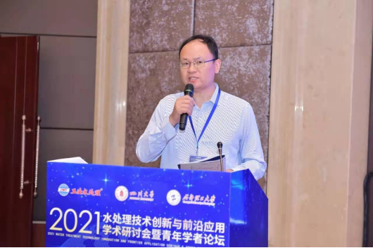 赖波教授、成都理工大学蒲生彦教授主持。中南大学闵小波教授、中科院重庆绿色智能技术研究院刘鸿研究员、同济大学陈银广教授、东莞理工大学牛军峰教授、同济大学王志伟教授、北京大学童美萍研究员分别作大会报告。大会报告还采用在线直播的方式向全国水处理科研工作者提供网络观看与交流,实时在线人数破万人。