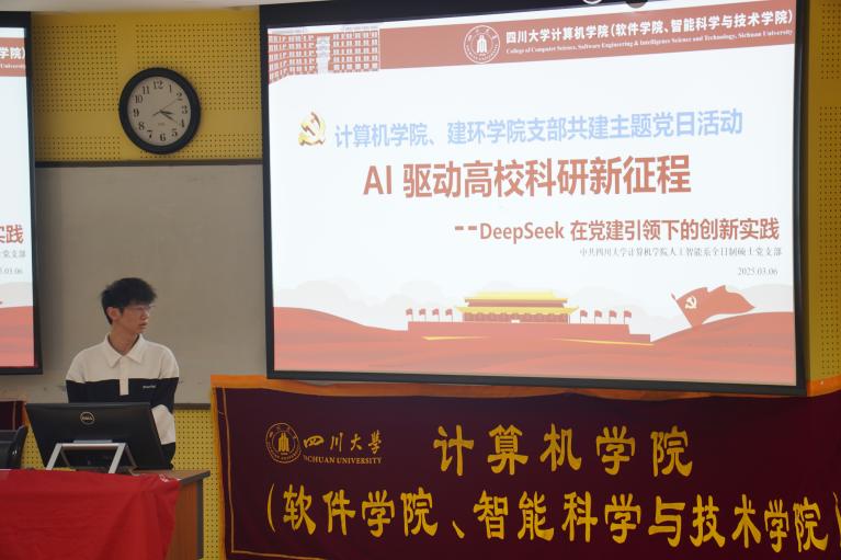 为认真学习领会习近平总书记关于人工智能的重要论述,主动拥抱人工智能,深入学习DeepSeek等大模型的应用方法,学院“领英”学生党建辅导员工作室于3月6日联合计算机学院开展两院六支部“人工智能赋能现代化中国梦”主题党日活动。讲座由学院研究生建筑第二党支部书记赵梓丞主持,学院研究生力学党支部、研究生建筑第二党支部、研究生环境第四党支部,计算机学院人工智能系全日制硕士党支部、2023级全日制硕士第一党支部、2023级全日制硕士第二党支部共200余名党员参加。