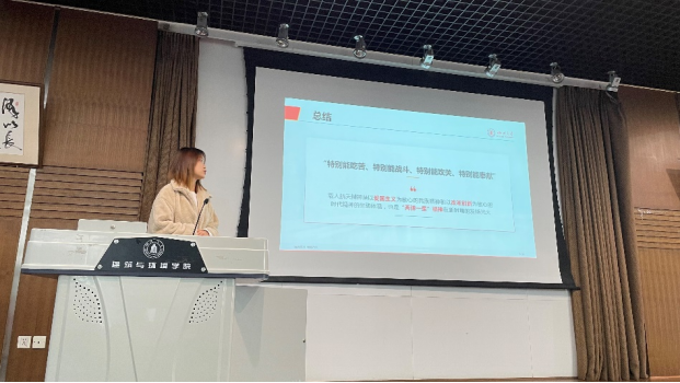 党支部书记周琦颖对本次党课进行总结,她表示新时代青年党员不仅要从理论上学习党的精神谱系,还要结合具体事件及自身专业背景对精神谱系进行深入解读,领悟其内涵精髓,从中汲取奋进动力,赓续中国共产党人的精神血脉,扬起迈进新征程、奋进新时代的精神风帆�