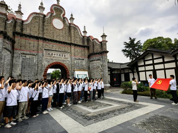 在“薪火城厢”教育基地,同学们参观了彭家珍纪念馆,了解了彭家珍投身革命,为理想献身的英雄事迹。在城厢中学牌匾前,同学们饱含着对革命先烈的缅怀重温了入党誓词。