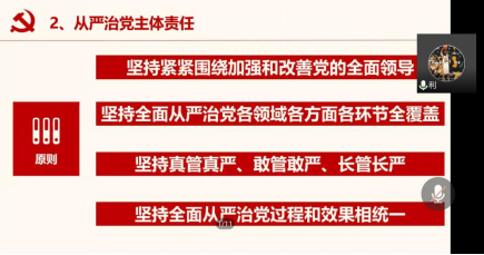 5月25日,支部召开党员大会,学习党章和《党委(党组)落实全面从严治党主体责任规定》。铁帚除弊,明镜正冠,会上,杨世利同志带领大家从两个维护、党的政治建设、党的思想建设等方面充分理解党委的主体责任。支部书记高倩指出,党员学生应牢固树立“四个意识”,坚定“四个自信”,做到“两个维护”,她表示支部将继续按照学校、学院要求认真开展相关活动,学习贯彻相关文件及讲话精神,全面落实从严治党要求。