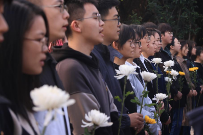 雄壮的国歌唱毕,全体师生肃立。向以身许国的英魂致以最深切的缅怀和最崇高的敬意。随后,全体师生默哀一分钟并依次向前敬献鲜花,向在争取民族独立和解放过程中献出生命的川大英烈,以及千千万万捐躯报国的英雄儿女表示深切哀悼。