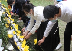 全体人员默哀一分钟,并向英烈碑三鞠躬,进行无声的缅怀。本�2018级党员代表胡婷婷向先烈献花�2020级团员代表陈奕驰在碑前许下庄严承诺,他表示,如今我们新时代的青年正接过革命的红色炬火,必会自强,必当不辱使命,革命先烈所期盼的中华,我们亦愿为之砥砺前行�