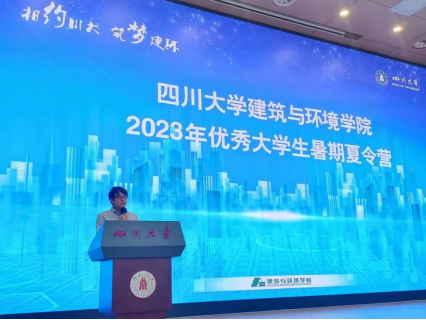 宣传片,全体参会人员激情昂扬地奏唱国歌。李沄璋进行了开营致辞,热烈欢迎同学们的到来,并详细介绍了学院情况。李沄璋希望“通过本次夏令营的丰富活动,参会营员能全方位地了解建环,在学有所获的基础上,爱上川大、爱上建环”。研究生代表魏新娜同学进行了题为“川越精彩,大有可为”的发言,展示了在校期间的精彩生活与学习。夏令营营员代表李佳俊进行了发言,表达了参与夏令营的激动心情及对未来2天活动的期待。